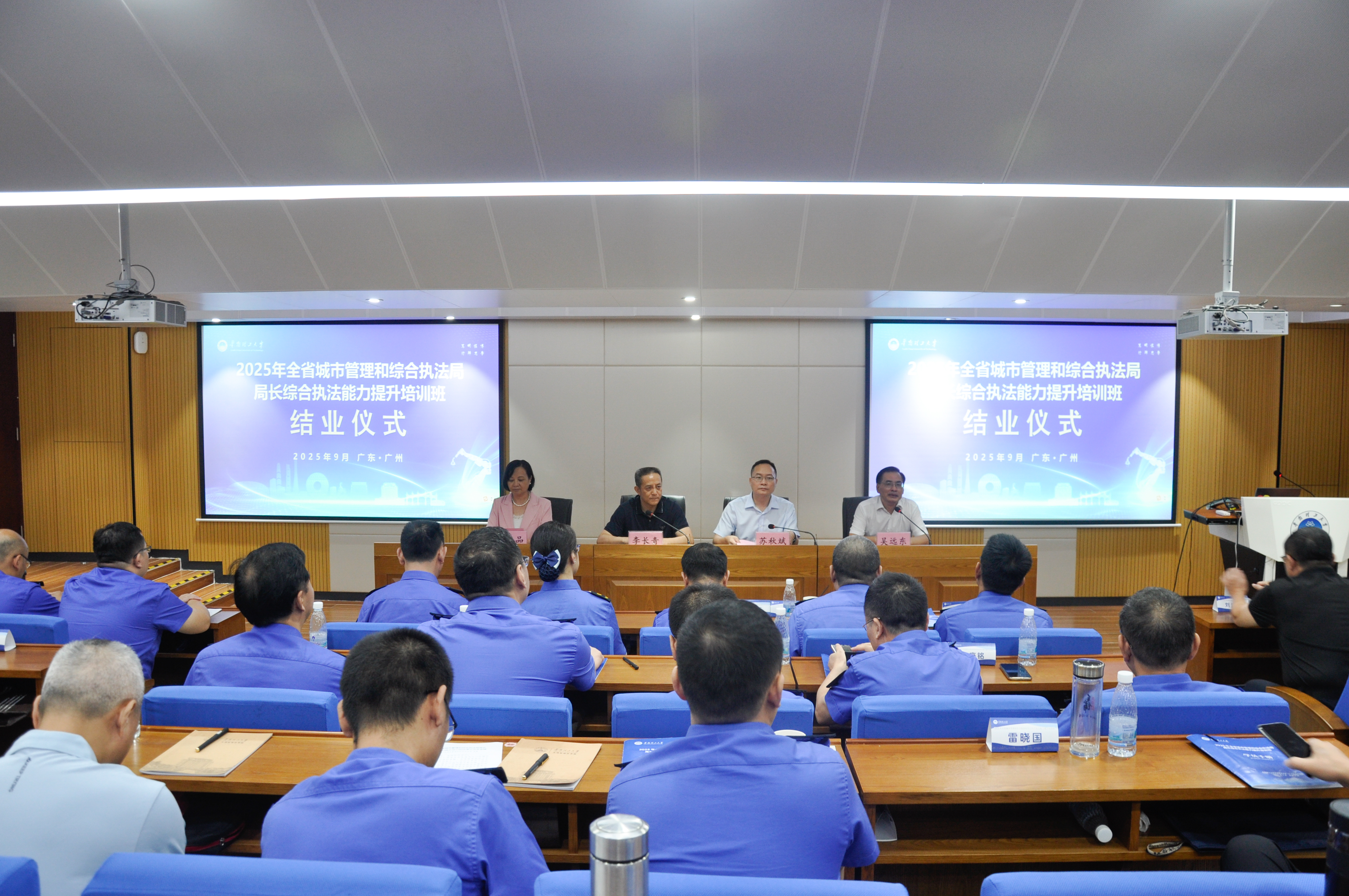 9月21日-26日,由广东省住房和城乡建设厅主办,华南理工大学承办的“2025年全省城市管理和综合执法局局长综合执法能力提升培训班”在华南理工大学继续教育学院顺利举办。继续教育学院院长苏秋斌、副院长吴远东,广东省住房和城乡建设厅城市管理综合执法监督处处长李长青、一级调研员杨香品等出席开班和结业式活动,来自全省21个地市、县(市、区)79名城市管理和综合执法部门相关负责人参加了培训学习。